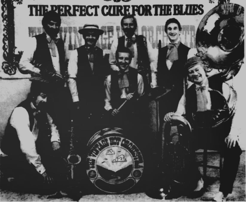 The Vintage Hot Orchestra had been delivering Jazz, Music Hall, Hot Music and Dance Music and the perfect cure for the blues since they formed in 1971. The zany orchestra’s antics were often likened the famous Temperance Seven and Bob Kerr’s Whoopee Band. The type of music they performed included The Sheikh of Araby, Button Up Your Overcoat and Me and Jane in a Plane.